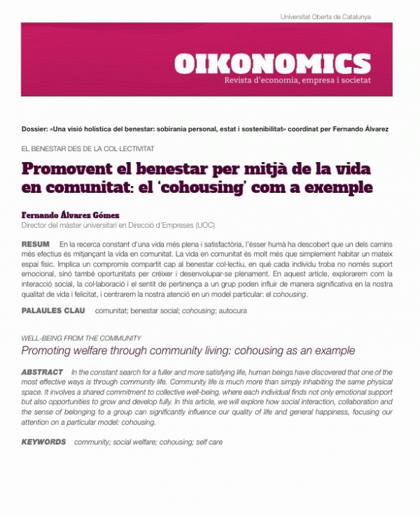 Promovent el benestar per mitjà de la vida en comunitat : el ‘cohousing’ com a exemple / Fernando Álvarez Gómez [Recurs electrònic]