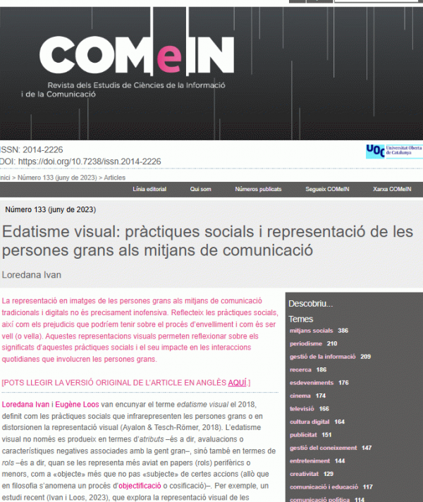 "La representació en imatges de les persones grans als mitjans de comunicació tradicionals i digitals no és precisament inofensiva. Reflecteix les pràctiques socials, així com els prejudicis que podríem tenir sobre el procés d’envelliment i com és ser vell (o vella). Aquestes representacions visuals permeten reflexionar sobre els significats d’aquestes pràctiques socials i el seu impacte en les interaccions quotidianes que involucren les persones grans."