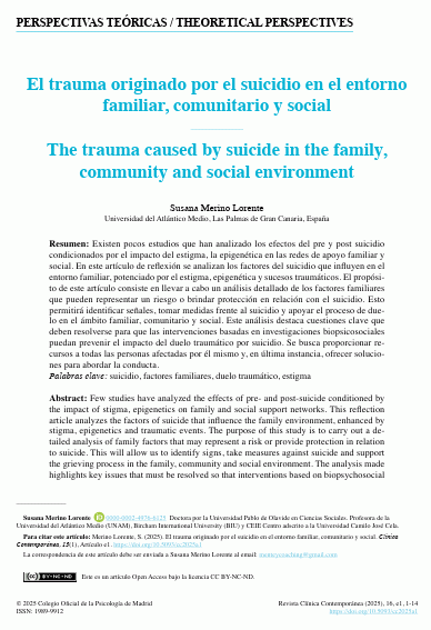 El trauma originado por el suicidio en el entorno familiar, comunitario y social / Susana Merino Lorente [Recurs electrònic]